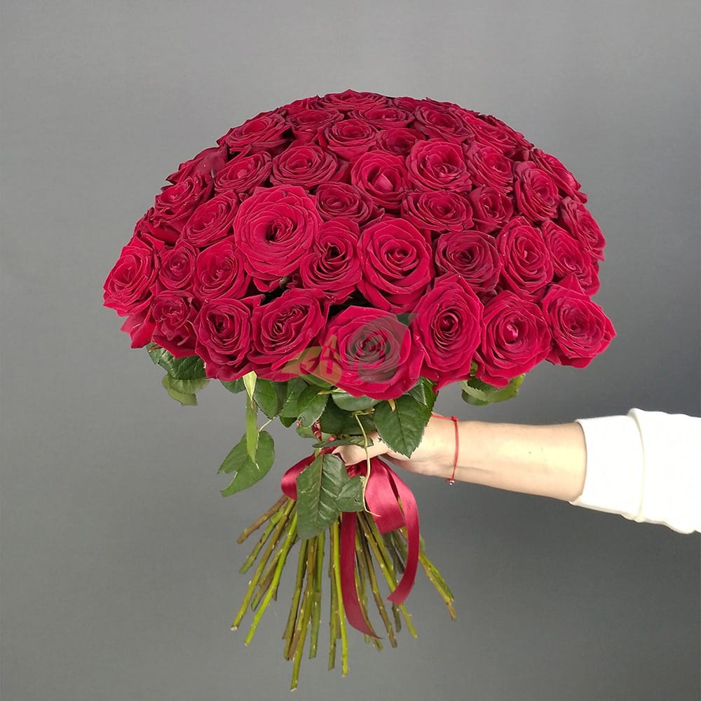 • Роза - 45 штук, цвет - красный, длина стебля - 60 см;