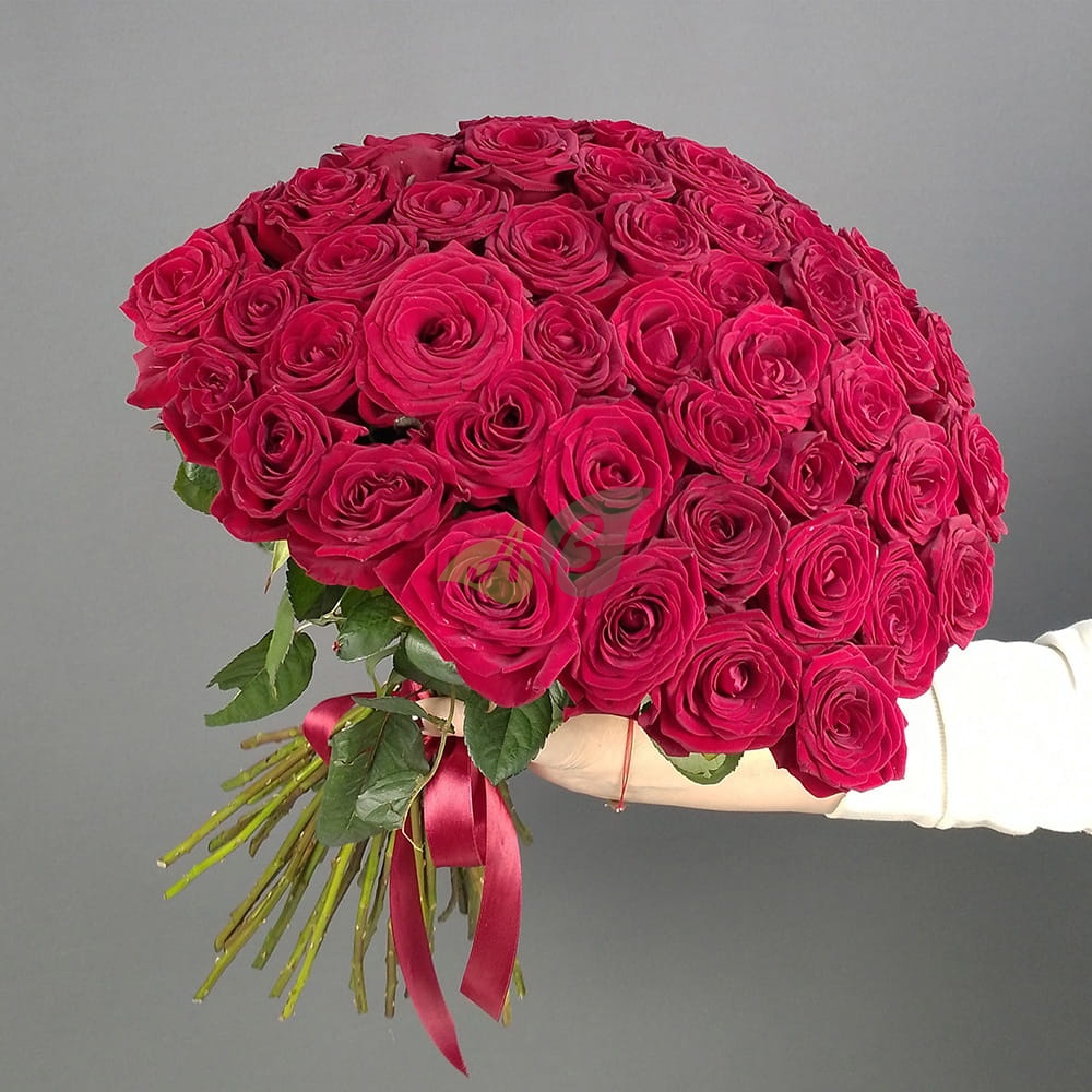 45 свежих красных роз в букете