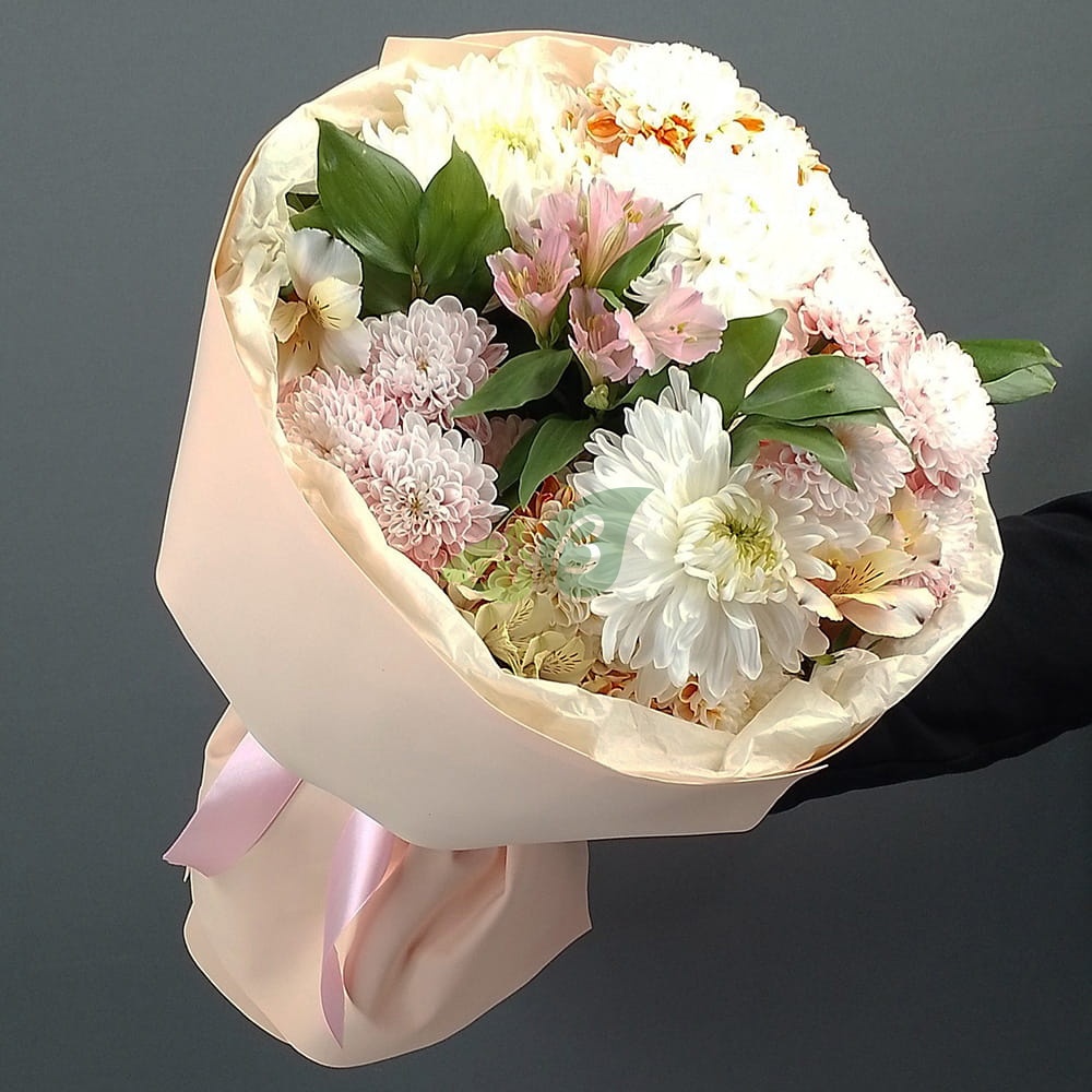 “Фламенко” – это букет из хризантем и альстромерии, который можно купить в нашем интернет-магазине.